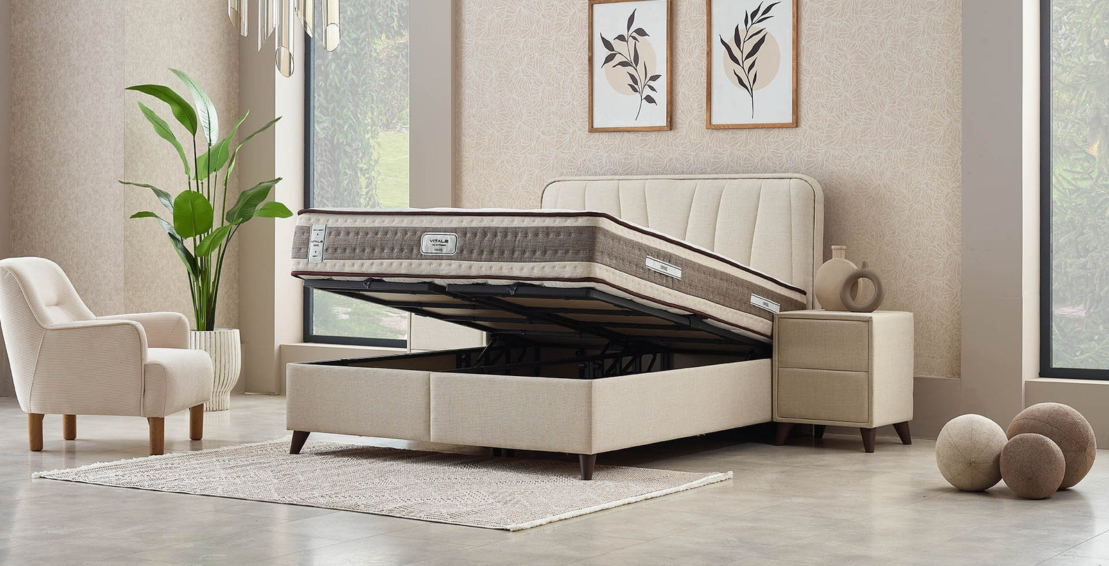 • Zubehör inklusive: Matratze, Bettkasten, Kopfteil